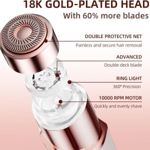 Facial Hair Removal for Women Painless Hair Remover, Waterproof Shaver Razor Hair Remover with LED Light for Face Bikini Peach Fuzz Upper Mustache Lip Chin (Rose Gold)