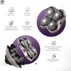 4 Head Replacement Blade Best Electric Shaver & Head Shaver Blade, Smooth Shave with Less Irritation